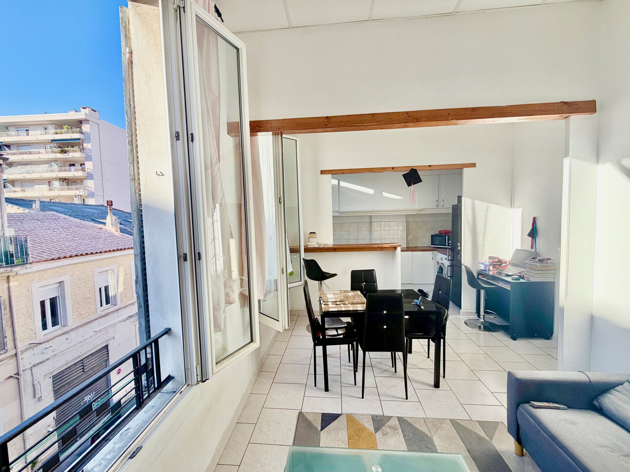 Marseille 5ème - Quartier Baille/Timone.Au Calme, rue Michel MERINO, Type 2 lumineux de 37m² au 2eme et dernier étage d’un petit immeuble parfaitement entretenu, idéalement situé à proximité immédiate des commerces, transports, facultés et commodités.Il se compose d’un hall d’entrée, un séjour lumineux avec cuisine ouverte de 21 m², bénéficiant de trois fenêtres en PVC double vitrage et d’une exposition sud-ouest. Une chambre sans ouverture directe sur l’extérieur de 10 m² avec une grande penderie, une salle d’eau et un wc indépendant.